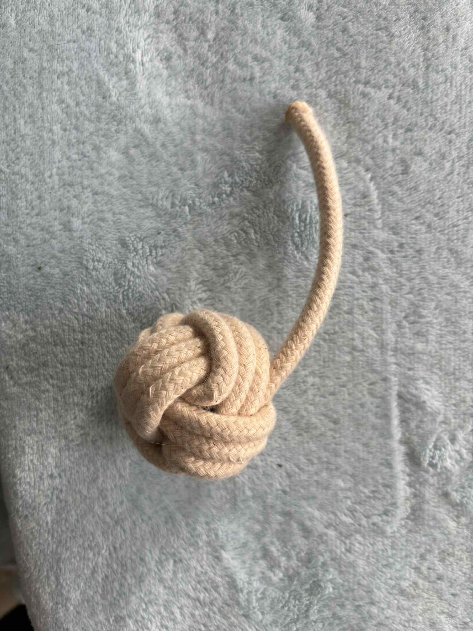 Son tressage serré en forme de "poing de singe" offre une prise en main (ou en patte !) idéale, permettant à votre compagnon de l'attraper, de la faire rouler ou de la transporter facilement dans toute la maison.